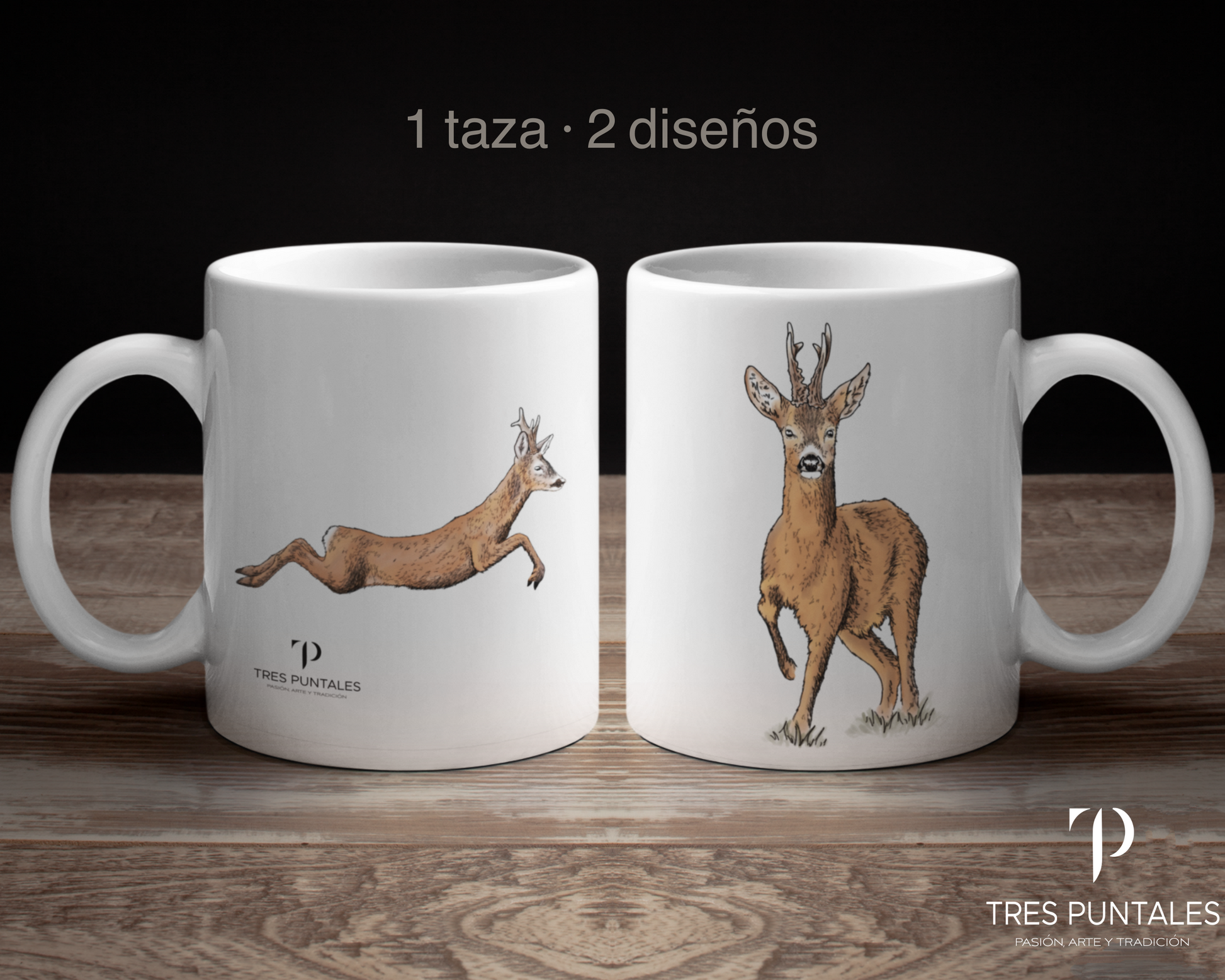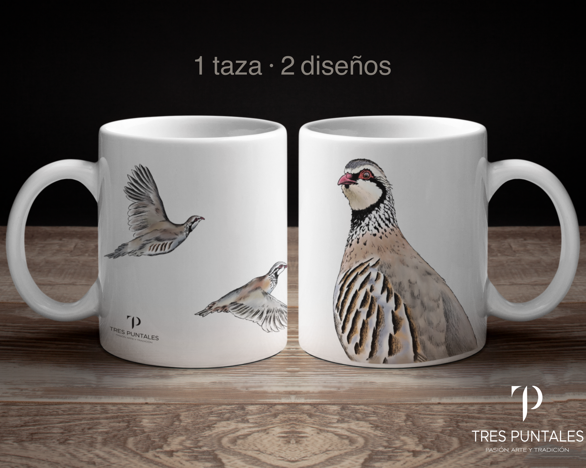 Taza de cerámica con diseños originales y registrados de Perdiz, Agarre de Jabalí, Venado / Ciervo, Zorzal, Becada y Corzo